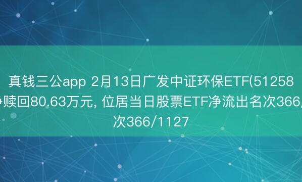 真钱三公app 2月13日广发中证环保ETF(512580)遭净赎回80.63万元, 位居当日股票ETF净流出名次366/1127