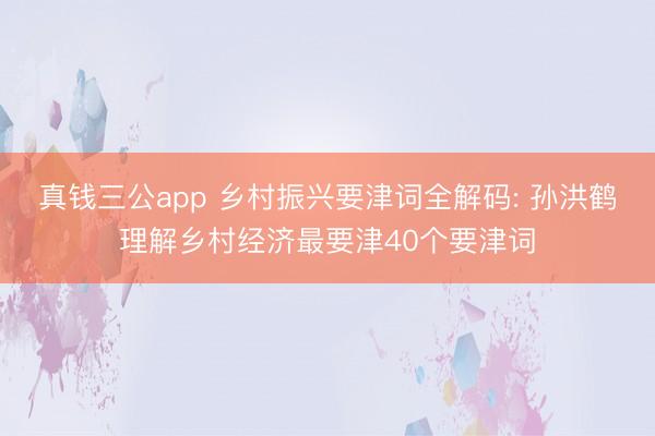 真钱三公app 乡村振兴要津词全解码: 孙洪鹤理解乡村经济最要津40个要津词