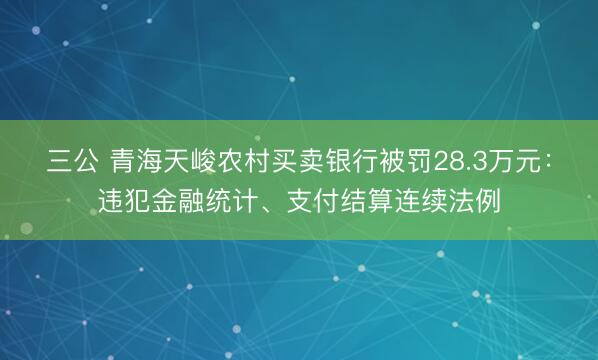 三公 青海天峻农村买卖银行被罚28.3万元:违犯金融统计、支付结算连续法例