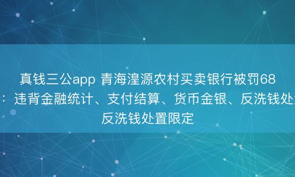 真钱三公app 青海湟源农村买卖银行被罚68.8万元:违背金融统计、支付结算、货币金银、反洗钱处置限定