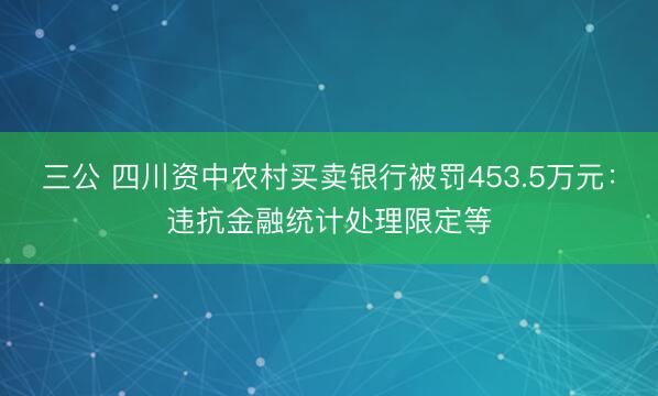 三公 四川资中农村买卖银行被罚453.5万元:违抗金融统计处理限定等