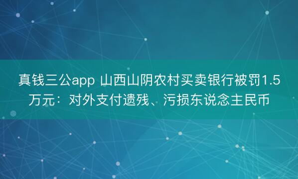 真钱三公app 山西山阴农村买卖银行被罚1.5万元:对外支付遗残、污损东说念主民币