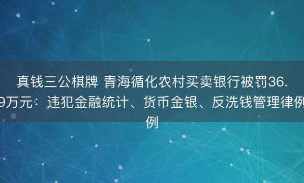 真钱三公棋牌 青海循化农村买卖银行被罚36.9万元:违犯金融统计、货币金银、反洗钱管理律例