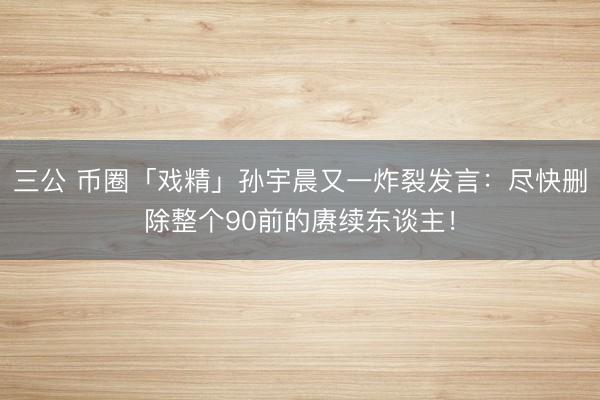 三公 币圈「戏精」孙宇晨又一炸裂发言:尽快删除整个90前的赓续东谈主!