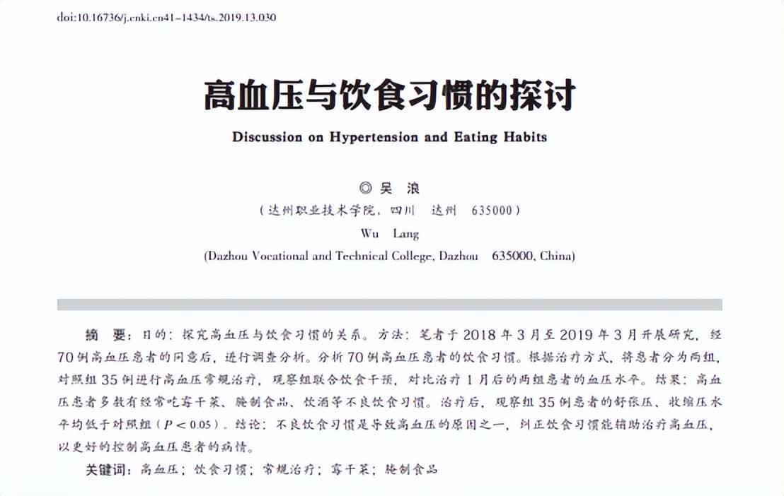 参考贵府:[1]吴浪.高血压与饮食风俗的探讨[J].当代食物,2019