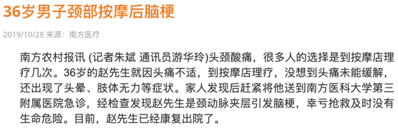 颈部推拿后颈动脉夹层继发脑梗 丨南边医疗