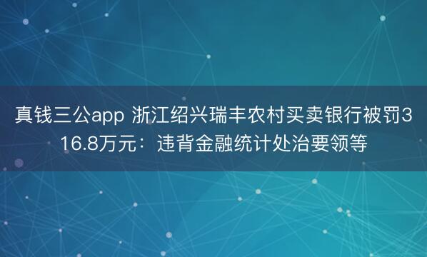 真钱三公app 浙江绍兴瑞丰农村买卖银行被罚316.8万元:违背金融统计处治要领等