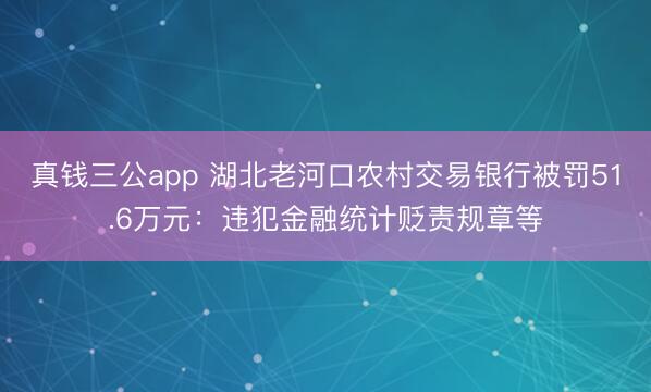 真钱三公app 湖北老河口农村交易银行被罚51.6万元:违犯金融统计贬责规章等