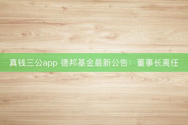 真钱三公app 德邦基金最新公告:董事长离任