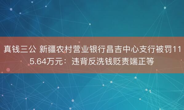 真钱三公 新疆农村营业银行昌吉中心支行被罚115.64万元:违背反洗钱贬责端正等