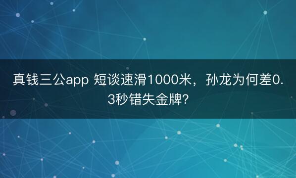 真钱三公app 短谈速滑1000米,孙龙为何差0.3秒错失金牌?