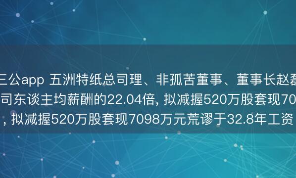 三公app 五洲特纸总司理、非孤苦董事、董事长赵磊年薪216.43万是公司东谈主均薪酬的22.04倍, 拟减握520万股套现7098万元荒谬于32.8年工资