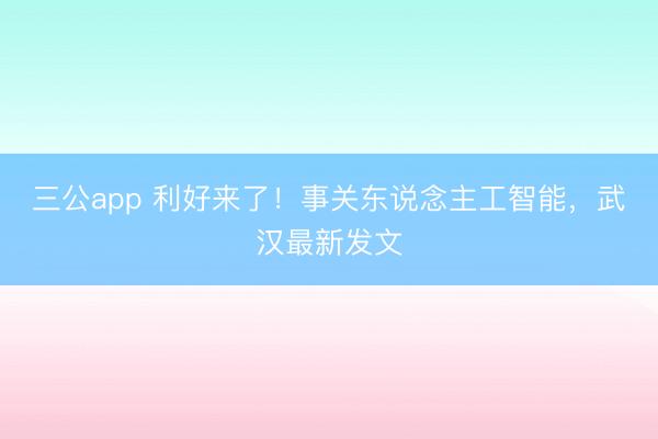 三公app 利好来了!事关东说念主工智能,武汉最新发文
