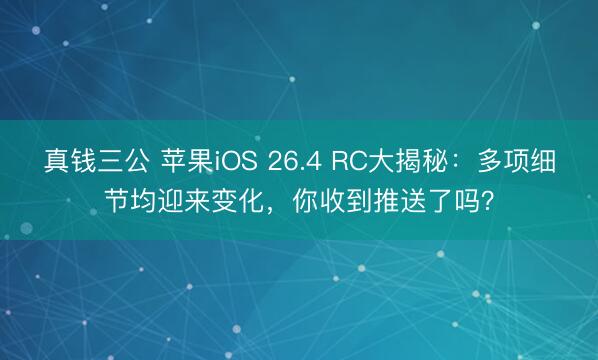 真钱三公 苹果iOS 26.4 RC大揭秘:多项细节均迎来变化,你收到推送了吗?