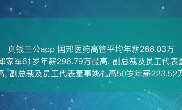 真钱三公app 国邦医药高管平均年薪266.03万: 董事长及非落寞董事邱家军61岁年薪296.79万最高, 副总裁及员工代表董事姚礼高50岁年薪223.52万最低