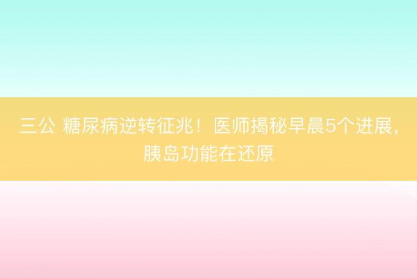 三公 糖尿病逆转征兆!医师揭秘早晨5个进展,胰岛功能在还原