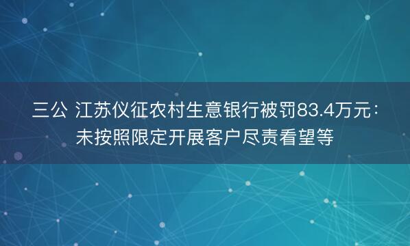 三公 江苏仪征农村生意银行被罚83.4万元:未按照限定开展客户尽责看望等