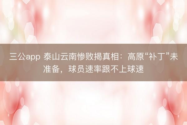 三公app 泰山云南惨败揭真相:高原“补丁”未准备,球员速率跟不上球速
