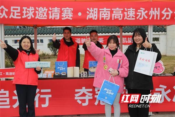 便民就业台旁的打卡墙以“永州蓝”为主颜色,设有“湘超”主题合影画框,并点缀着展示永州高速“潇湘·路缘”企业文化与“齐心行,永冲锋”球队精神的宣传立柱。永州高速的贴心就业也赢得了外地球迷的眷注复兴。领取礼袋后,纷纷在打卡墙处合影贪恋。