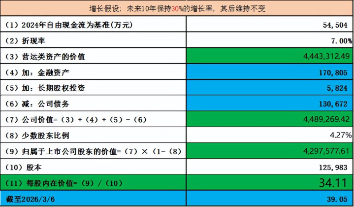 关于泰嘉股份,咱们以2024年开脱现款流为基数, 抽象过往的营收妥协脱现款流增长情况, 假定异日10年复合增长率为25%,, 估值如下: