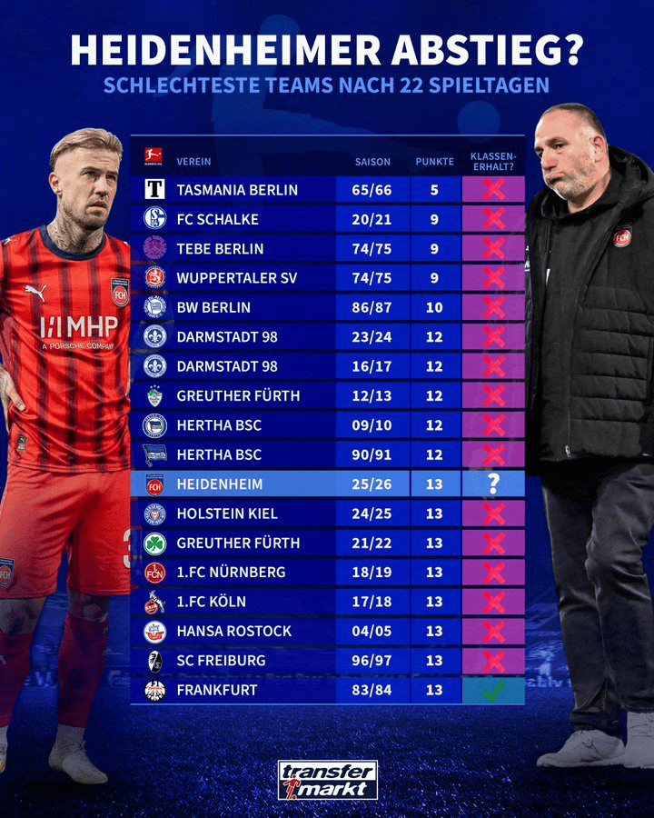 {jz:field.toptypename/}确认德国转会市集的统计,德甲历史上共出现过18支在赛季前22轮积分不提升13分的队伍,唯有1983/84赛季的法兰克福最终完成保级。
