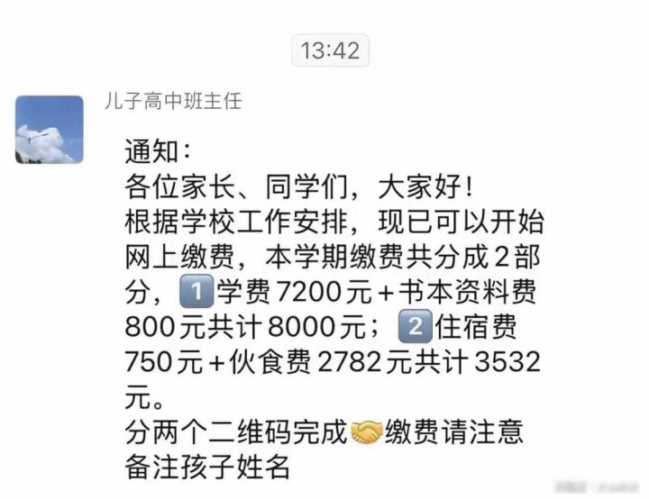 老张最近总睡不好觉,家里三个孩子开销大,大哥上高中,一学期光膏火和竹帛费就要八千块,住校吃饭还得再加三千五,老二上幼儿园花了七千,老三上托班也要七千,加起来一共两万五千多,这些皆是必须花的钱,不是乱用的,那张缴费单被班主任不防范发到家长群里,遵循传到网上去了,两天就有上亿东说念主看到,有东说念主骂他这是我方选的路,也有东说念主回答说这哪是聘用,根底就没得选。