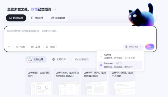 在模子层,Meoo集成了Qwen3.6-Plus、KimiK2.5、GLM-5、MiniMax-M2.5四大国内顶尖大模子,能基于粗陋辅导,快速生成匹配用户需求的代码。在Agent框架层,Meoo改进性支持蜂群Agent风物,不错同期勾通多个Agent并行贬包袱务,极地面教育开荒成果,粗陋应用生成时代低至1分钟。在贬责复杂任务时,用户还可选拔Agent风物,Meoo能自主沟通、废除名务,碰到问题时进行自我检测和扶植。